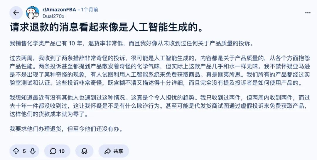 點擊上面?星標,不錯過任何一個跨境熱點干貨?? 最近,亞馬遜平臺上冒出了一種叫“AI協同退款欺詐”的新型騙局,已經有不少賣家中招! 就在近日,亞馬遜的許多賣家陸續收到新型的退款威脅郵件。 郵件內容聲稱產品質量存在嚴重問題,要求僅退款、不退貨。并威脅稱若賣家不配合,將向法院申請損害賠償。 從賣家反饋看,這些郵件的套路高度統一,主要有幾個重點特征: 問題對不上號:郵件描述的產品問題與賣家實際銷售的商品屬性不符合; 話術恐嚇唬人:對商品本身毫無了解,卻死咬“健康風險、人身損害”等嚴重后果制造恐慌; 訴求單一:直接跳過換貨、維修等協商環節,僅以“不退貨只退款”為唯一要求。? 這波威脅性“投訴郵件”覆蓋多個品類,從家居用品到3C電子,無一幸免。顯然是一場大規模的群發式詐騙行動。 但令人無奈的是,很多賣家按平臺要求,把物流記錄、產品合格證明都交了,結果平臺總以“避免麻煩”為由,審核沒下文。 據業內人士稱,這類模板化詐騙郵件很可能已形成產業鏈。 這類郵件背后往往使用了AI技術,讓整個詐騙看起來與真的無異。詐騙方會批量發送格式高度統一的投訴郵件——從稱呼、指控內容,到訴求用語都幾乎完全一致。 他們批量化作案特征就是牛頭不對馬嘴,內容和商品屬性完全不同。 有賣家主營五金配件,卻被投訴“液體泄漏導致皮膚灼傷,嚴重影響身體健康”。 據悉,國外已經有專門干“詐騙+倒賣”的團隊了,尤其瞄準高價值產品,一旦賣家妥協,他們就能白嫖商品,轉頭掛到其他平臺賣錢。 為了讓騙局更逼真,詐騙者會附上偽造的“產品損壞照片”,試圖用視覺證據擊潰賣家的心理防線。 賣家一定要學會辨別虛假證據、積極維權: 放大核查細節:AI生成的破損痕跡往往過于規整,缺少真實破損的毛刺和不規則紋理,且光線陰影生硬不自然; 關注背景破綻:AI合成圖的背景易出現模糊、比例失調、紋理重復等問題1可借助免費的AI圖片檢測工具輔助驗證。 2.收集證據,進行申訴 一旦碰到詐騙,馬上申訴,并且提交三類關鍵證據: ?AI假圖的檢測報告,直接證明對方證據偽造 產品合格檢測報告,佐證商品本身無質量問題 惡意投訴相關截圖,包括聊天記錄、郵件截圖。 - end - 亞馬遜漸進式打法基本邏輯 (最適合新手的產品推廣玩法) ?賣家精靈(全網最低價) 【標準高級VIP包年78折:SNOW78】 【單人版包年72折:SNOW72】 (續費、升級都可以用) 購買地址: https://www.sellersprite.com/cn/price ?優麥云(全網最低價) 【優麥云 4折專屬折扣碼:snow123】 購買地址:https://www.sellerspace.com/?utm=mgkjj ?Sif(全網最低價) 【Sif 88折專屬折扣碼:snow123】 購買地址:https://www.sif.com/? 新購、續費、增購、升級均適用—?1?—